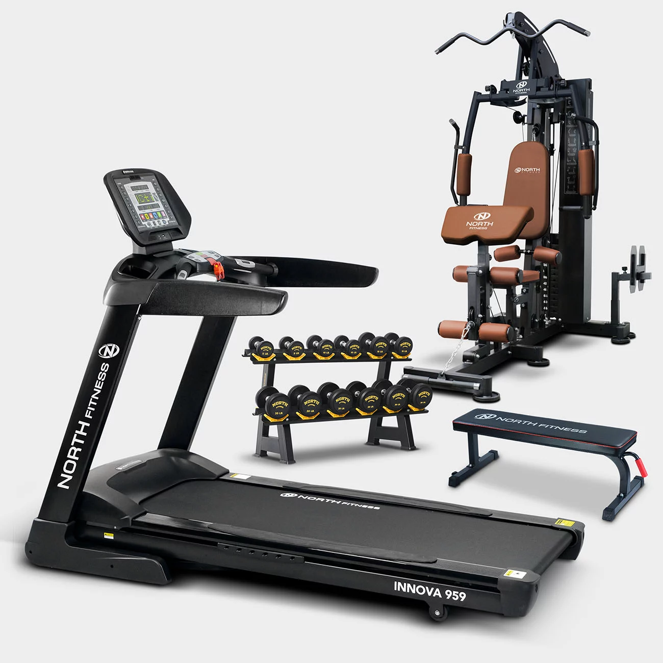ชุดโฮมยิมจัดเซตสุดคุ้ม ประกอบไปด้วย ลู่วิ่งไฟฟ้า INNOVA 959+โฮมยิม G1000L+ดัมเบลเซต DVR30+ม้านั่ง FB20 พร้อมกับราคาสุดคุ้มและของแถมมูลค่ากว่า 14,420 บาท